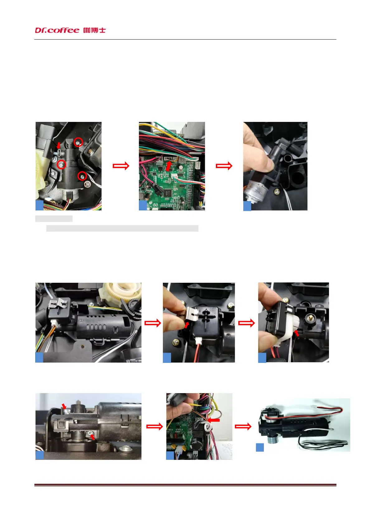 unscrew the three fixing screws at the position shown in the red circle and pull out the wiring plug of the stepper motor at the