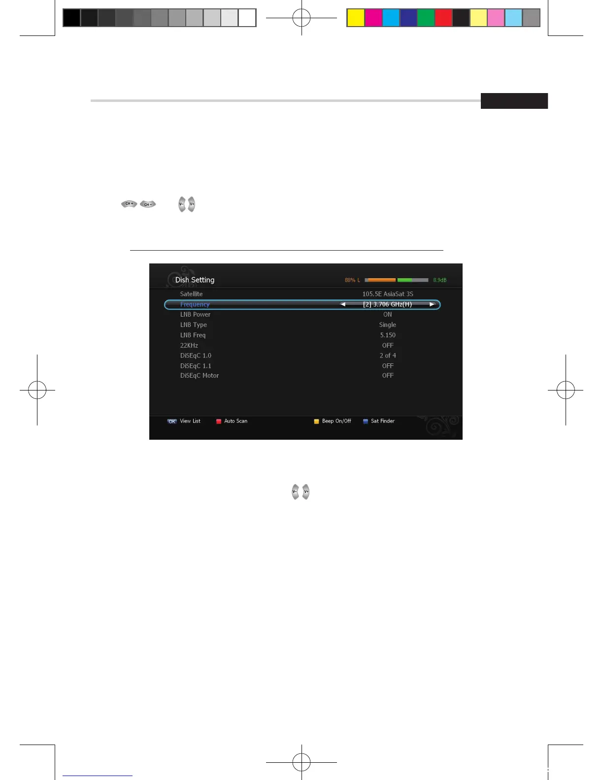 ▪ 22KHz: When not AUTO, set the signal path from LNB or switch by selecting a control signal