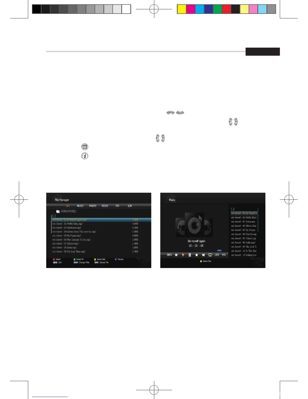 1.Select the MP3 file you want to play back by using , OK in the file list. <Figure 6.6.3>