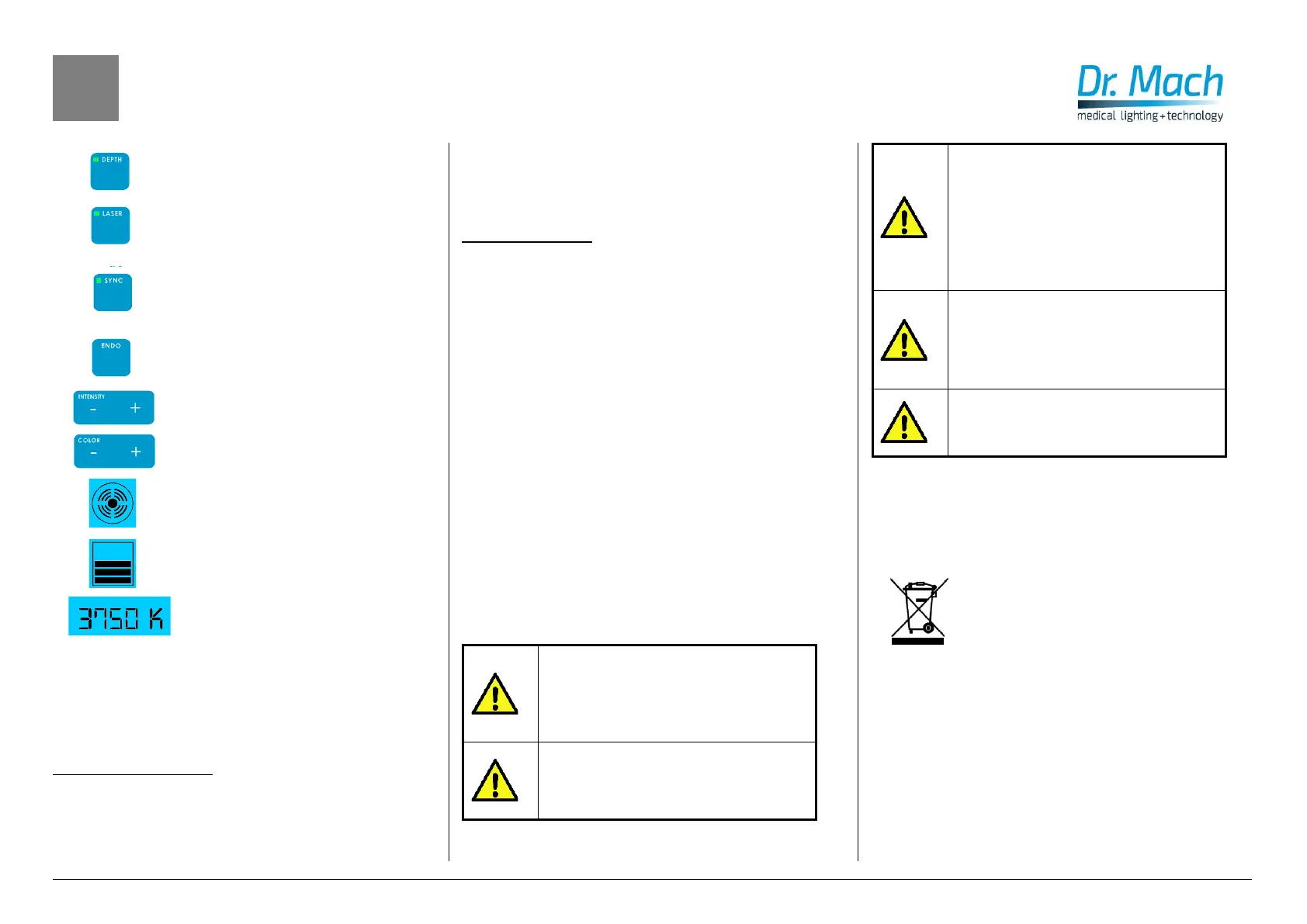 50 cm atstumo tarp operacinės lempos, įskai-