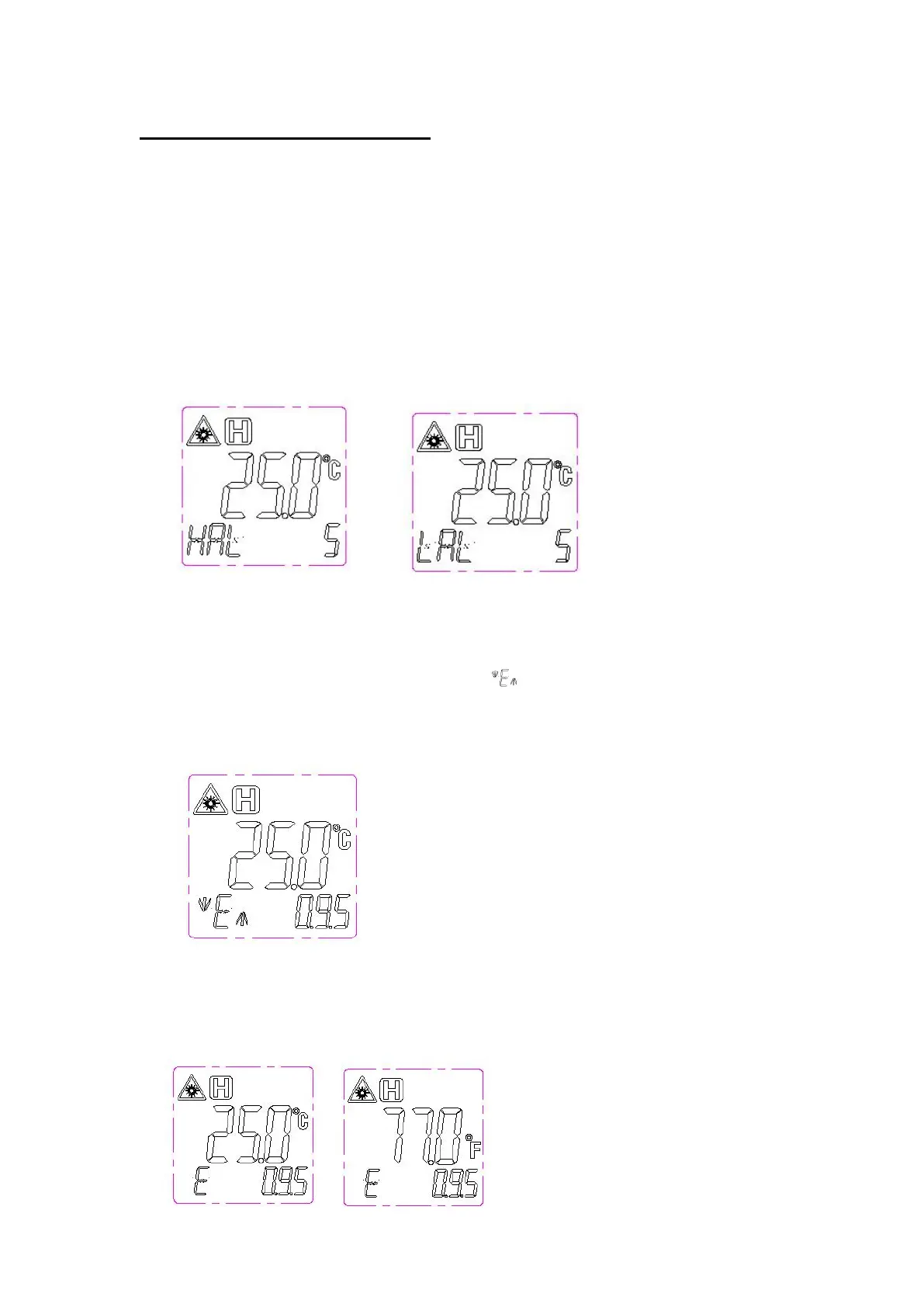 increase or decrease the emissivity value. A long hold on the ▲/▼ key will speed up