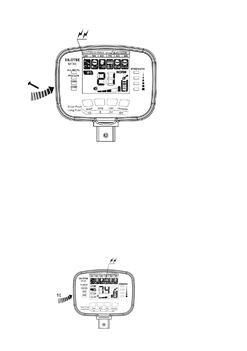 d)As the metal sample crosses, the corresponding target cursor flashes,