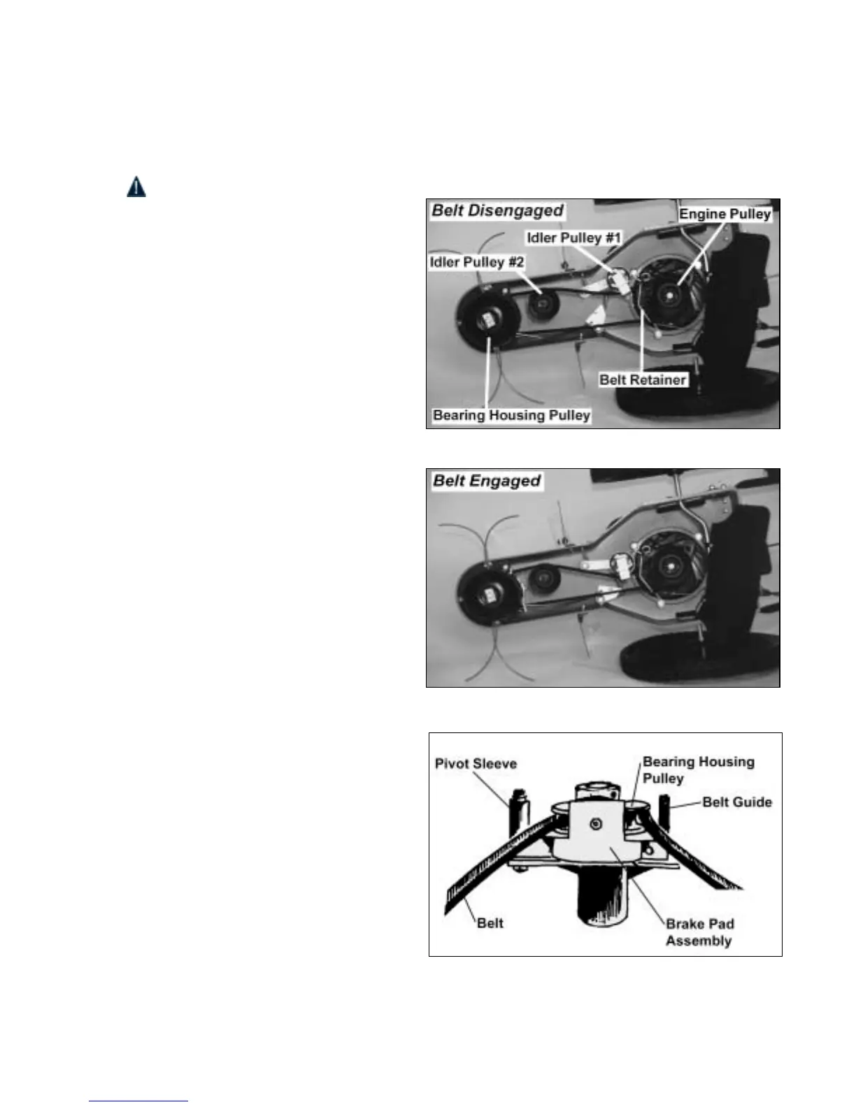 Figures 45 & 46 show the belt and pulley system from the underside of the machine.