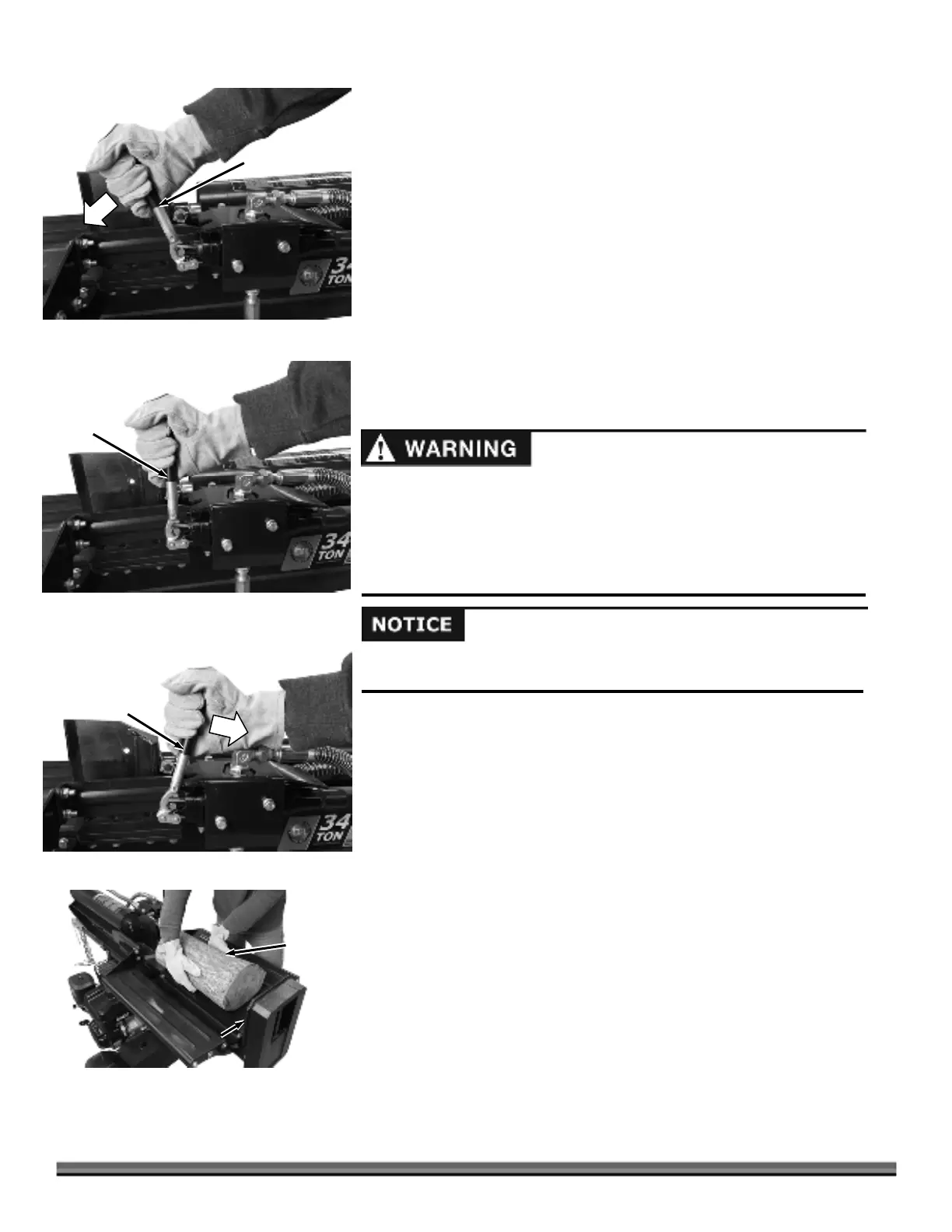 2. Place the log on the Log Splitter. Grasp the log on the sides near the middle of