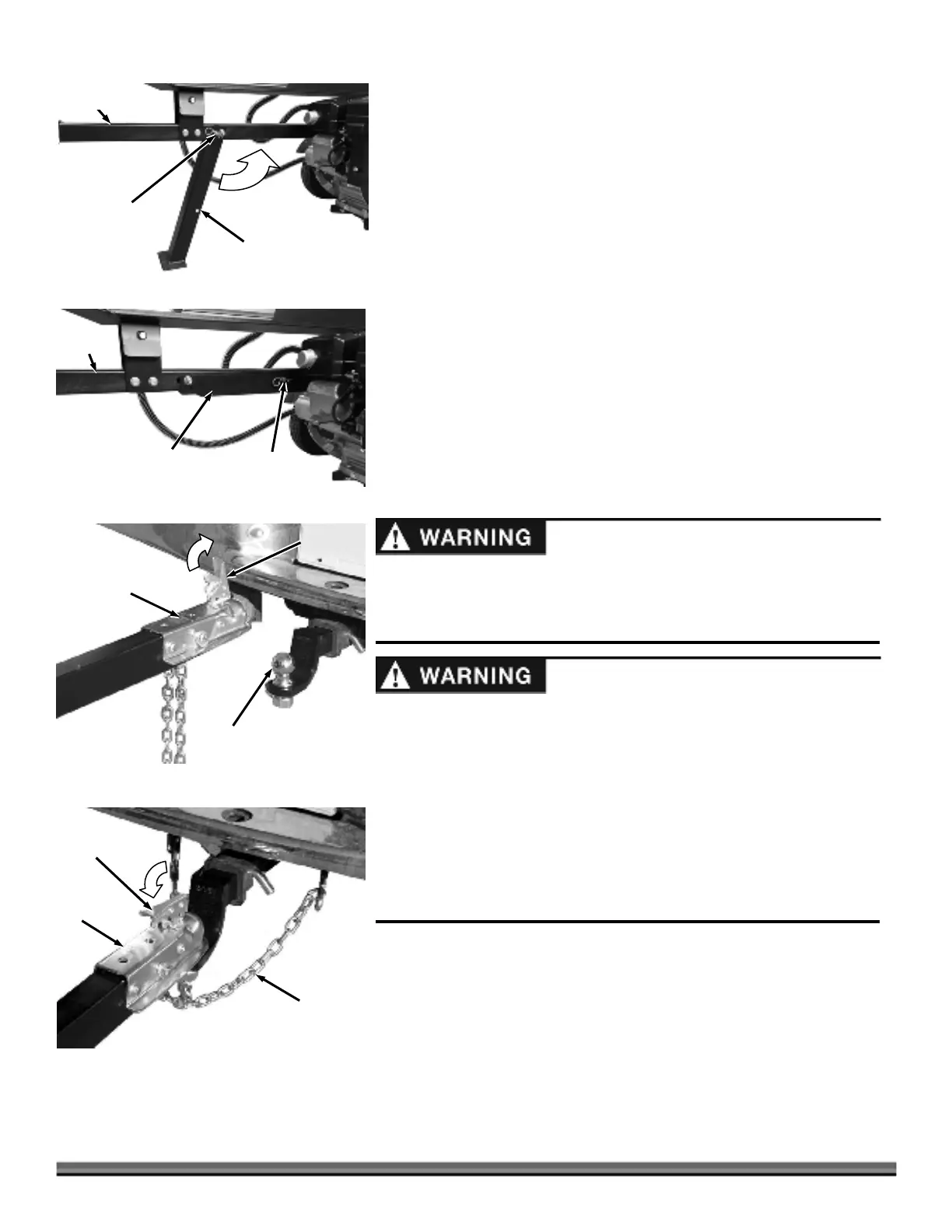 Note: When attaching the Safety Chains, Attach the left chain to the right anchor of