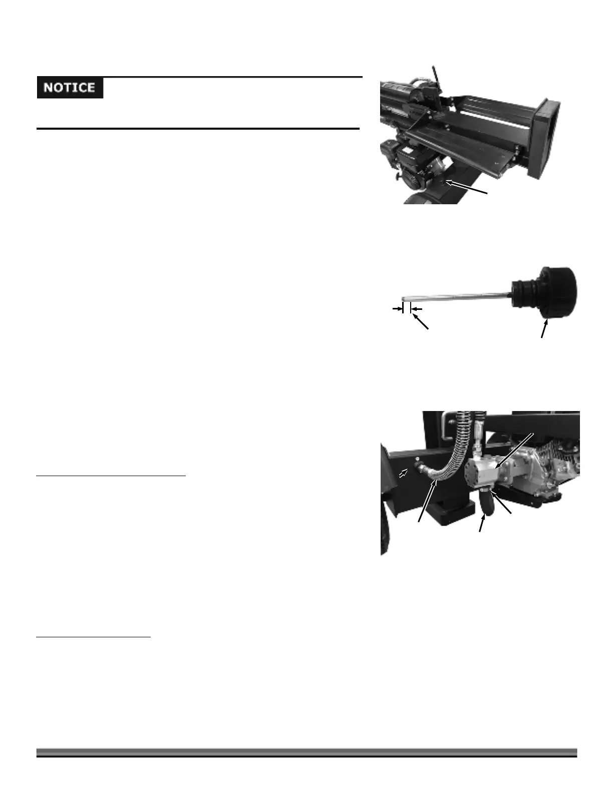Never run the Log Splitter unless the hydraulic fluid tank is at the proper level