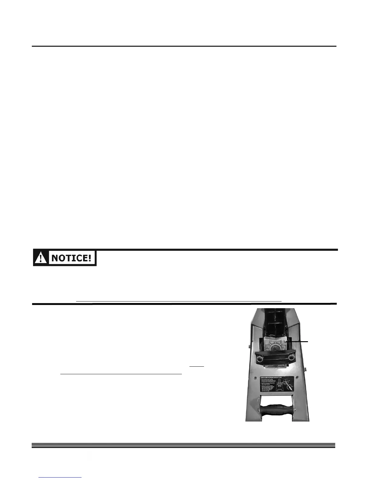 3. Prior to using the wood splitter, open the Air Bleed Screw
