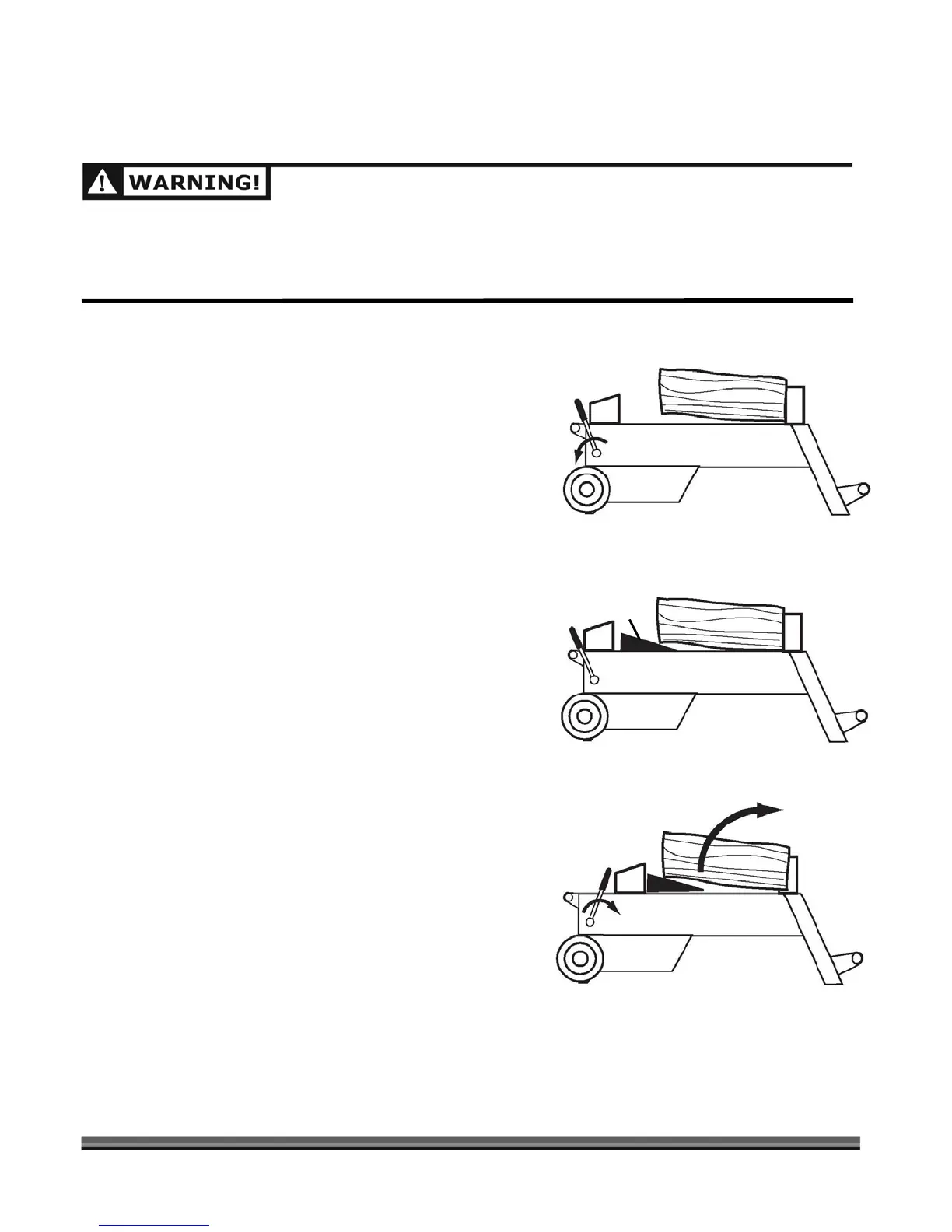 • NEVER PLACE YOUR HANDS NEAR THE LOG WHEN ATTEMPTING TO FREE IT FROM THE WEDGE.