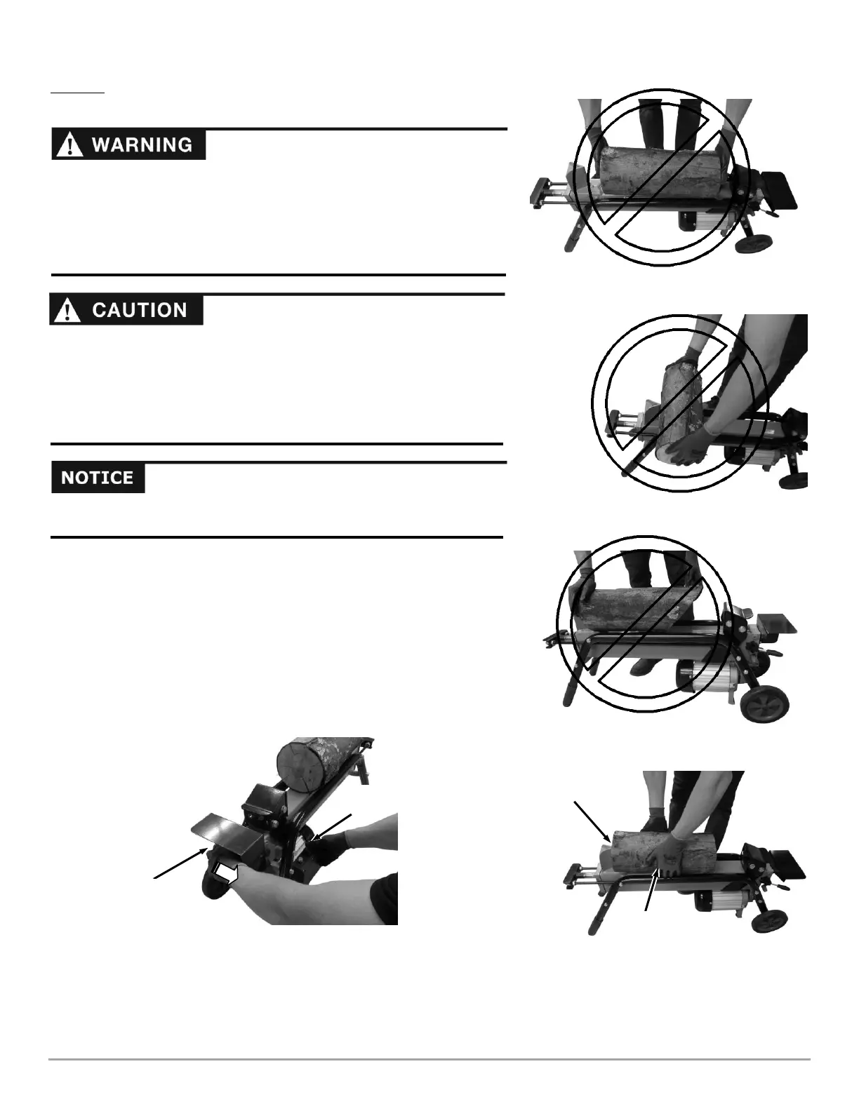 on the Log Splitter. (Figure 10). Center the log, side-to-side, on the rail of the