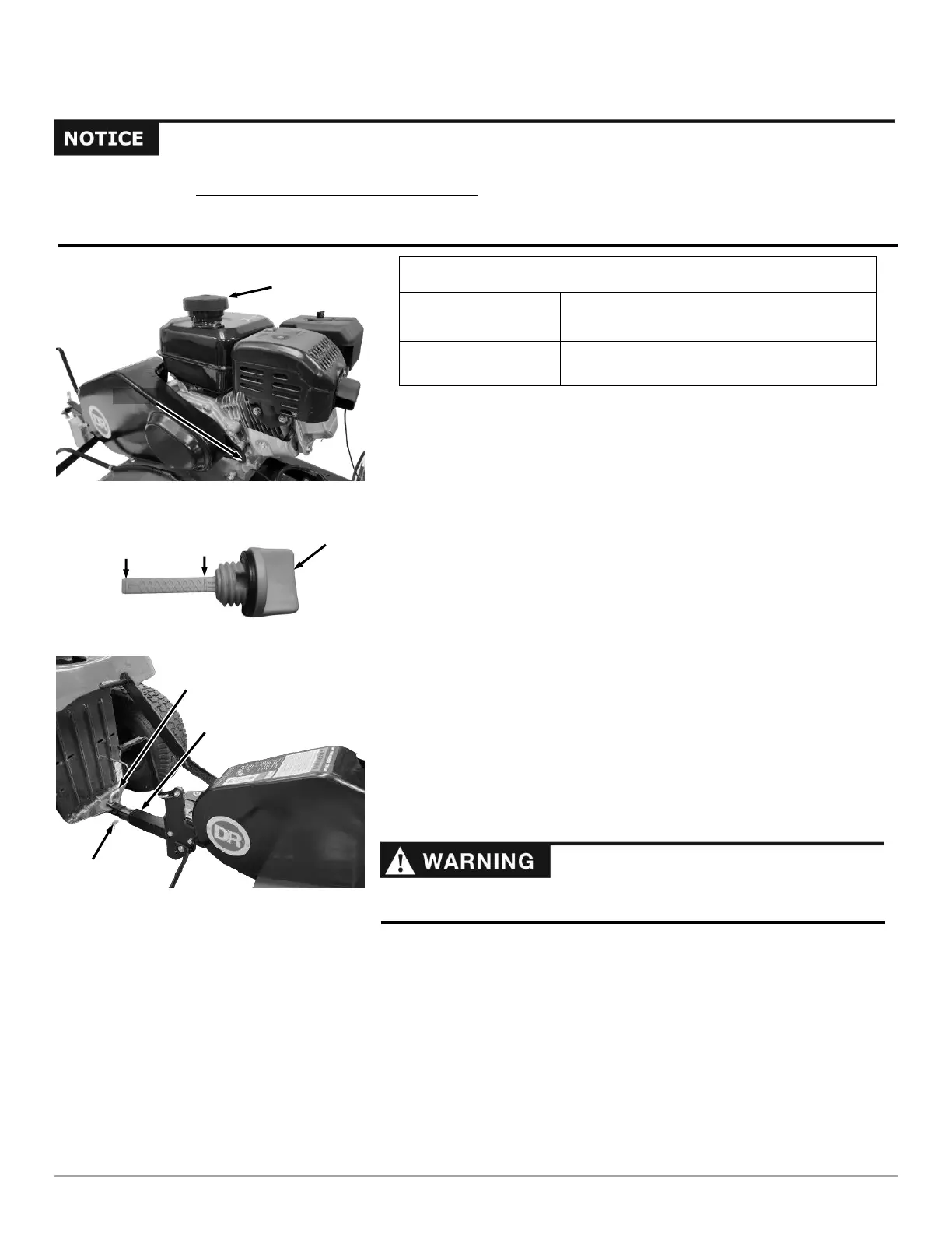 • You must add Oil before starting the Engine. This machine is shipped without Oil. Traces of Oil may be in the reservoir from
