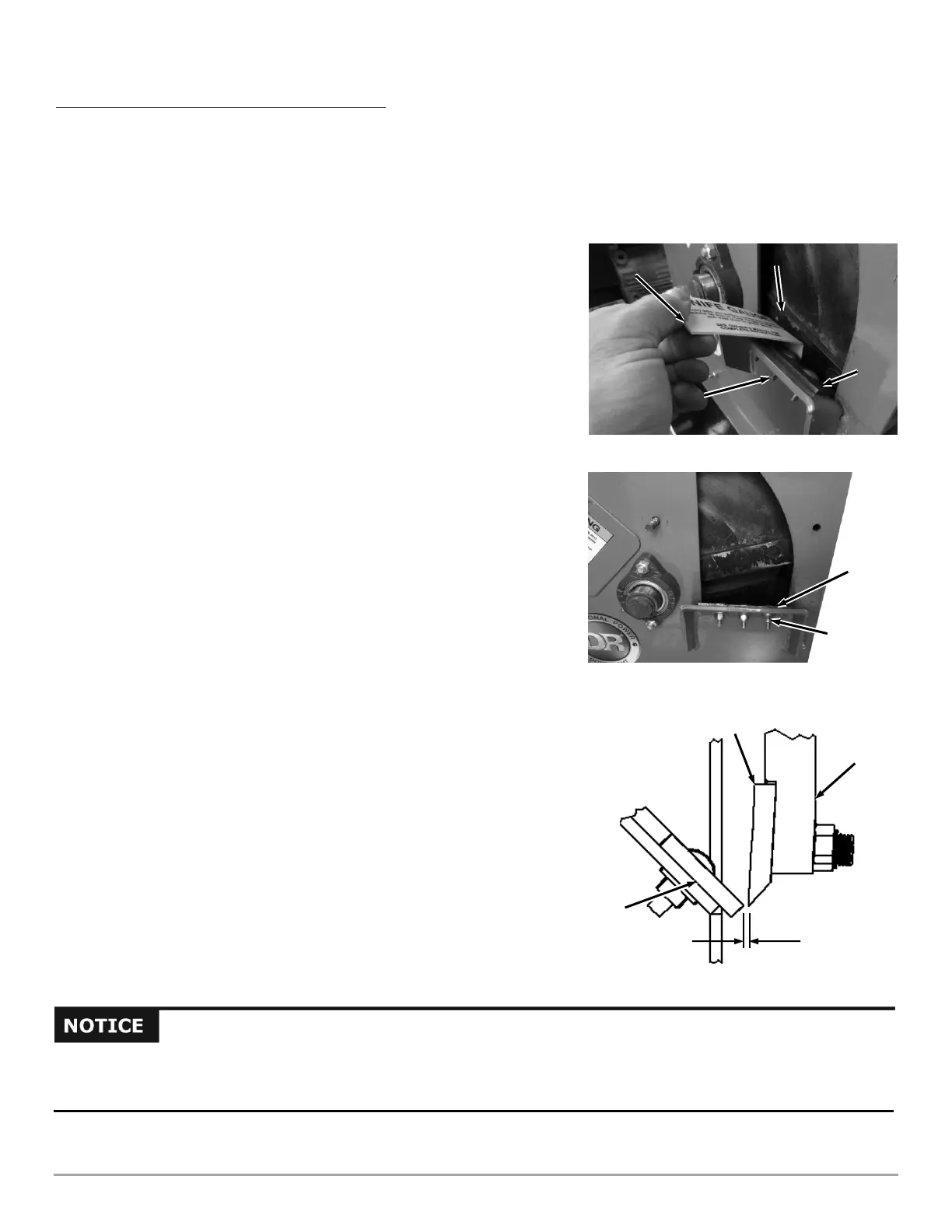 After any knife or wear plate maintenance or adjustment, rotate the chipper flywheel by using a wooden stick and watch and listen