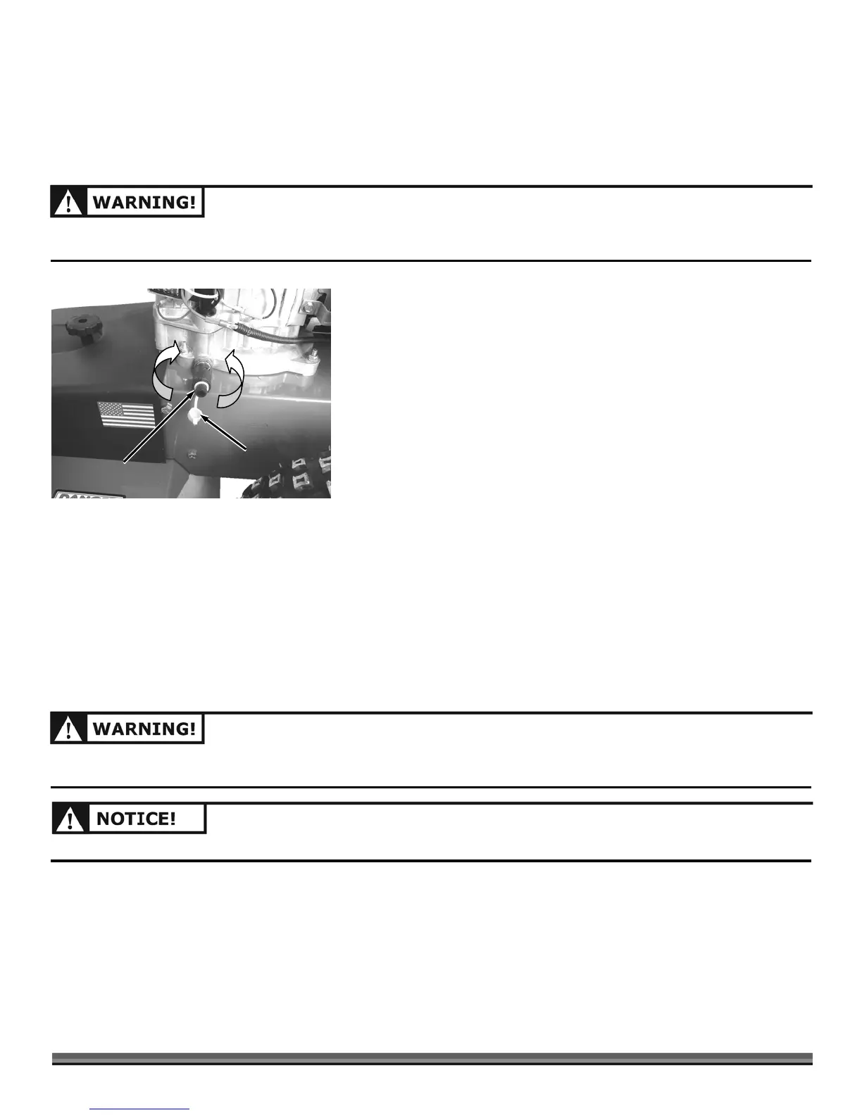 Shut down the engine, remove the spark plug wire and wait 5 minutes before performing any maintenance procedure or inspection
