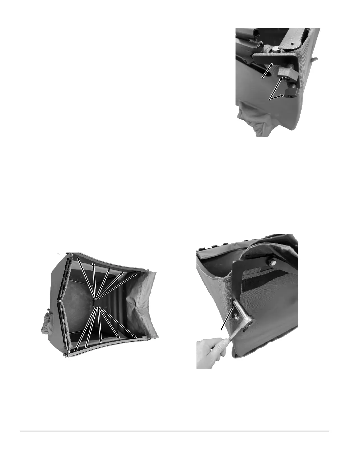 2. Tighten the back Outer Link Assembly using a 1/2” Wrench on the hex heads inside the canvas and a 1/2" deep socket on