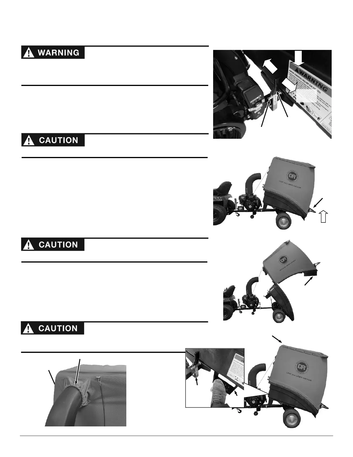 • Always shut off the tractor engine and the vacuum engine and use caution