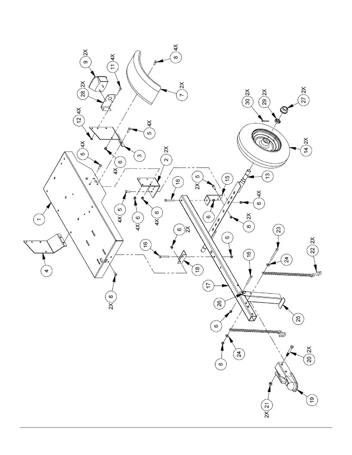 Schematic Base and Wheels Assembly Road Tow