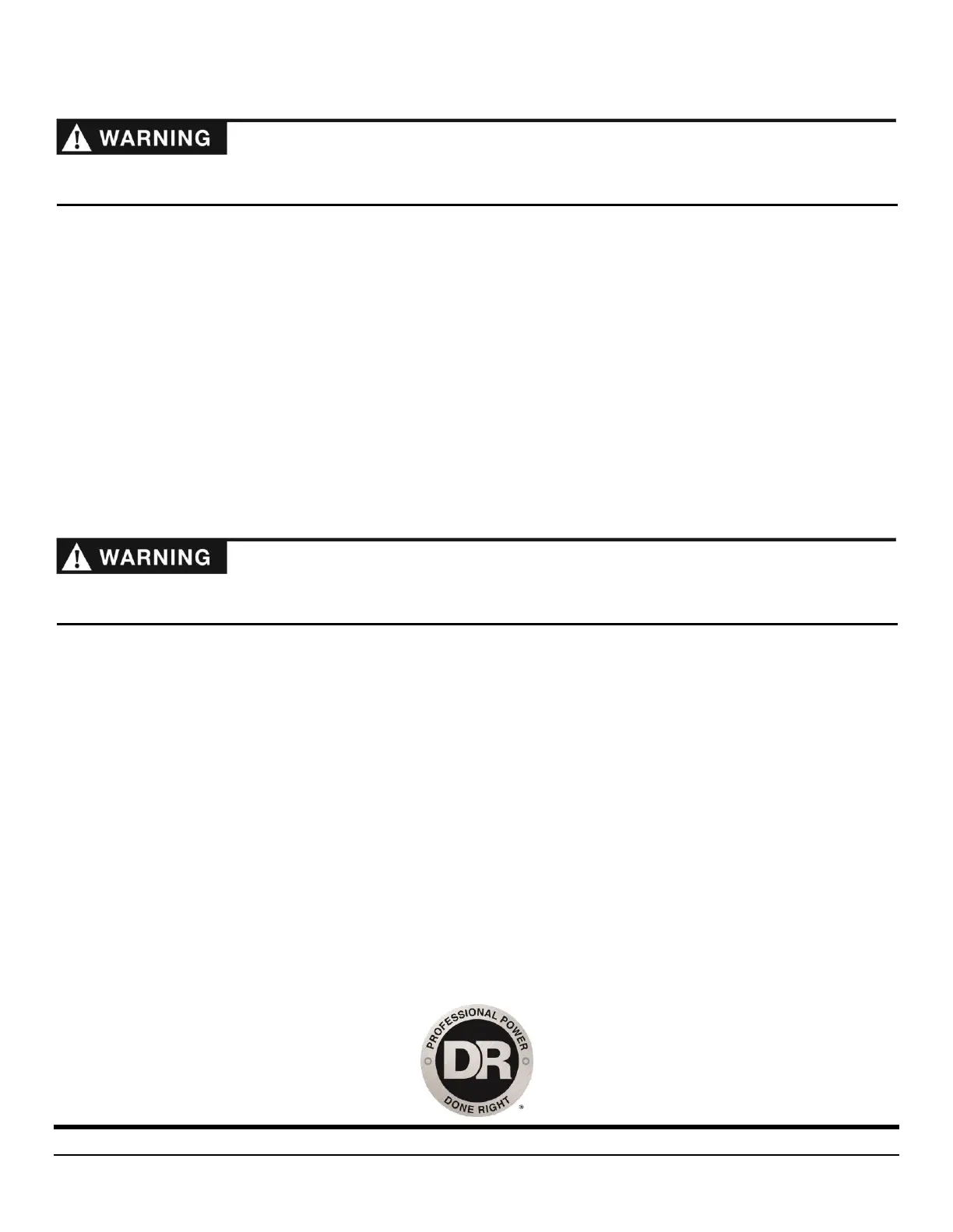 cover it with a protective material (especially the Engine). Contact us at www.DRpower.com or call 1-800-DR-OWNER (376-