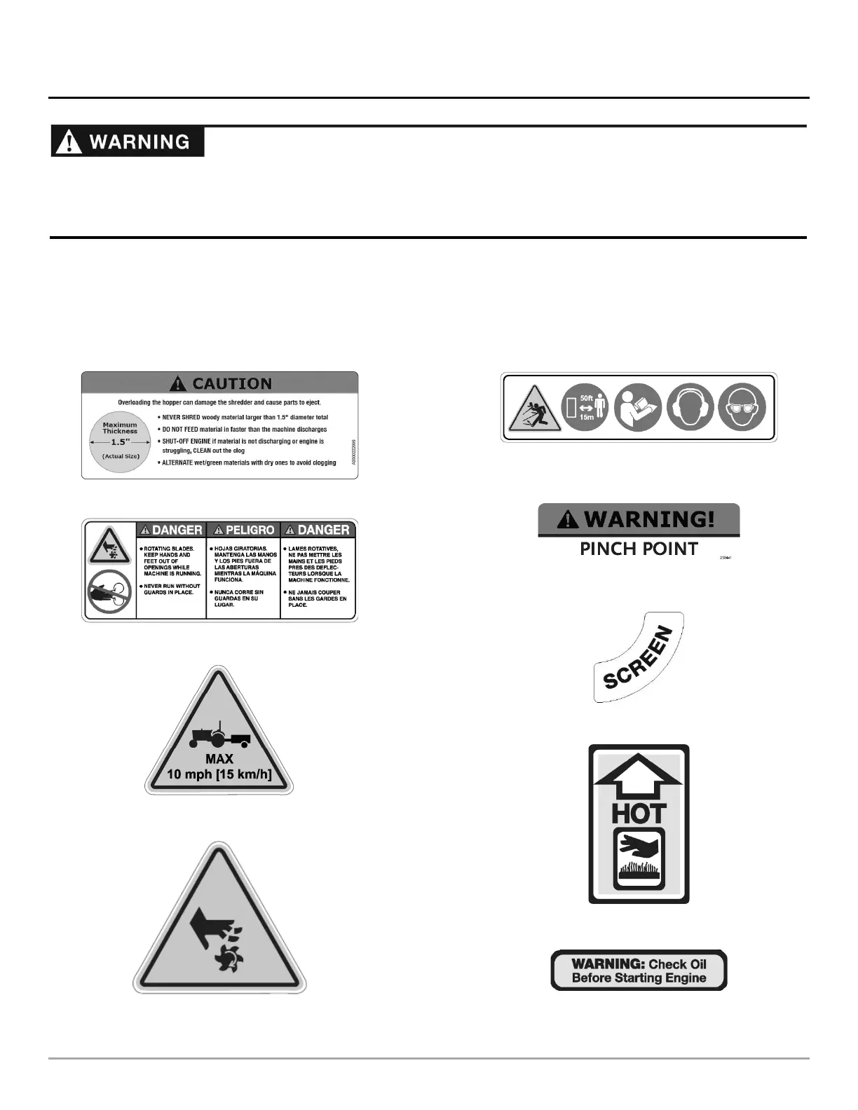 their location on your DR PRO XL520 CHIPPER-SHREDDER as you set up and before you operate the unit. Replace damaged or