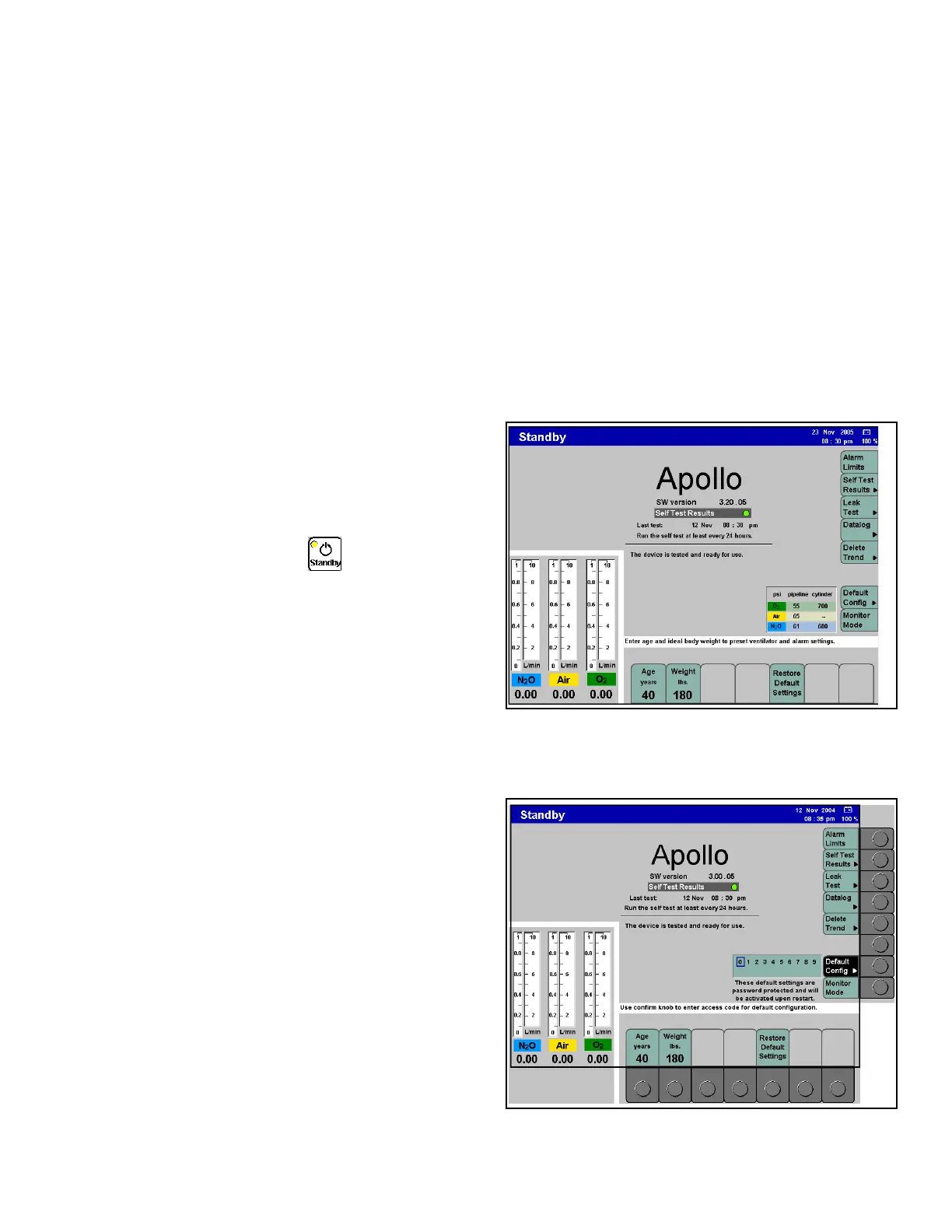 Figure 111. Location of Standby Config KeyThe default settings are a set of saved ventilation,