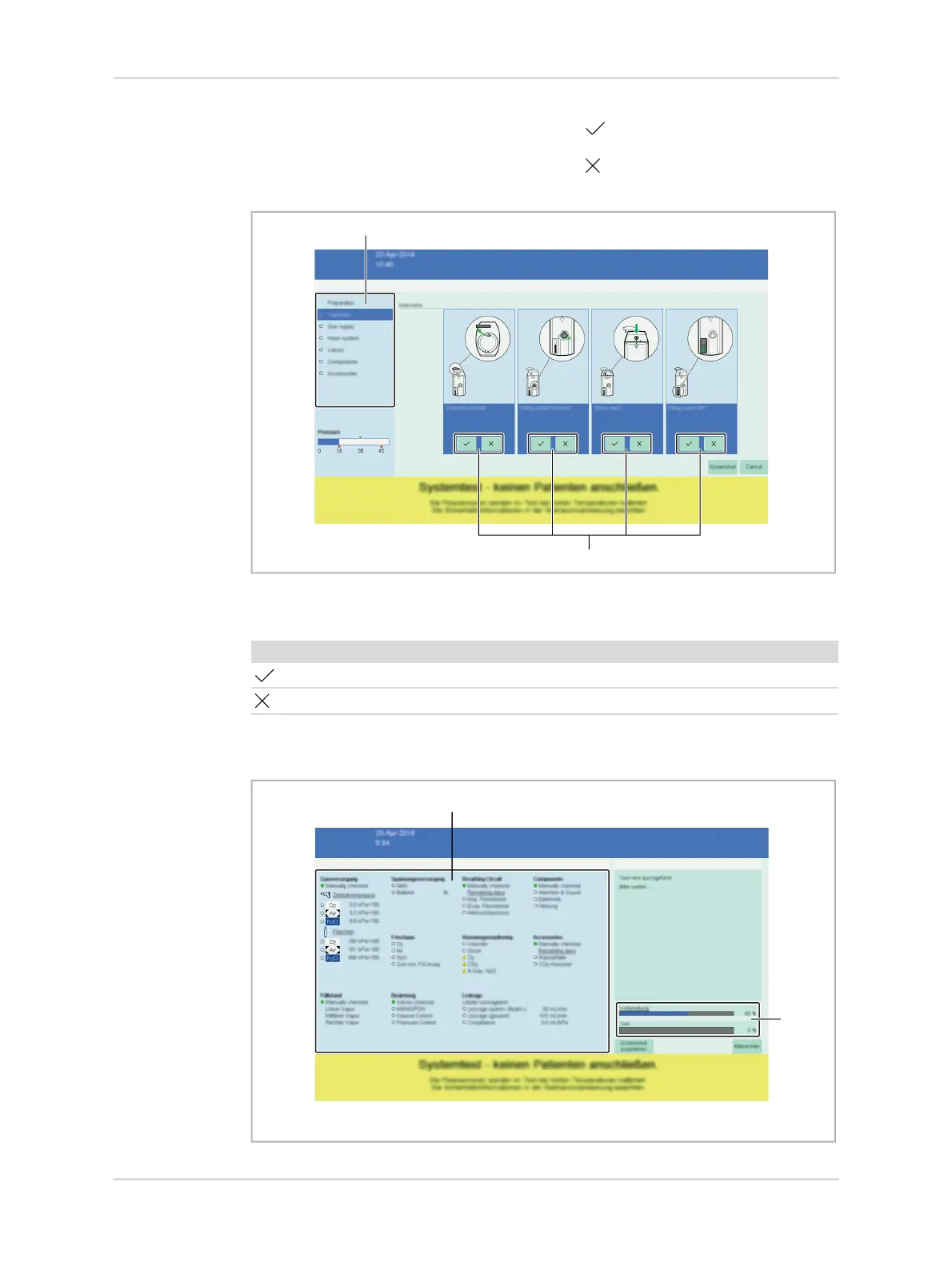 The buttons (7) are used to document whether the check passed.