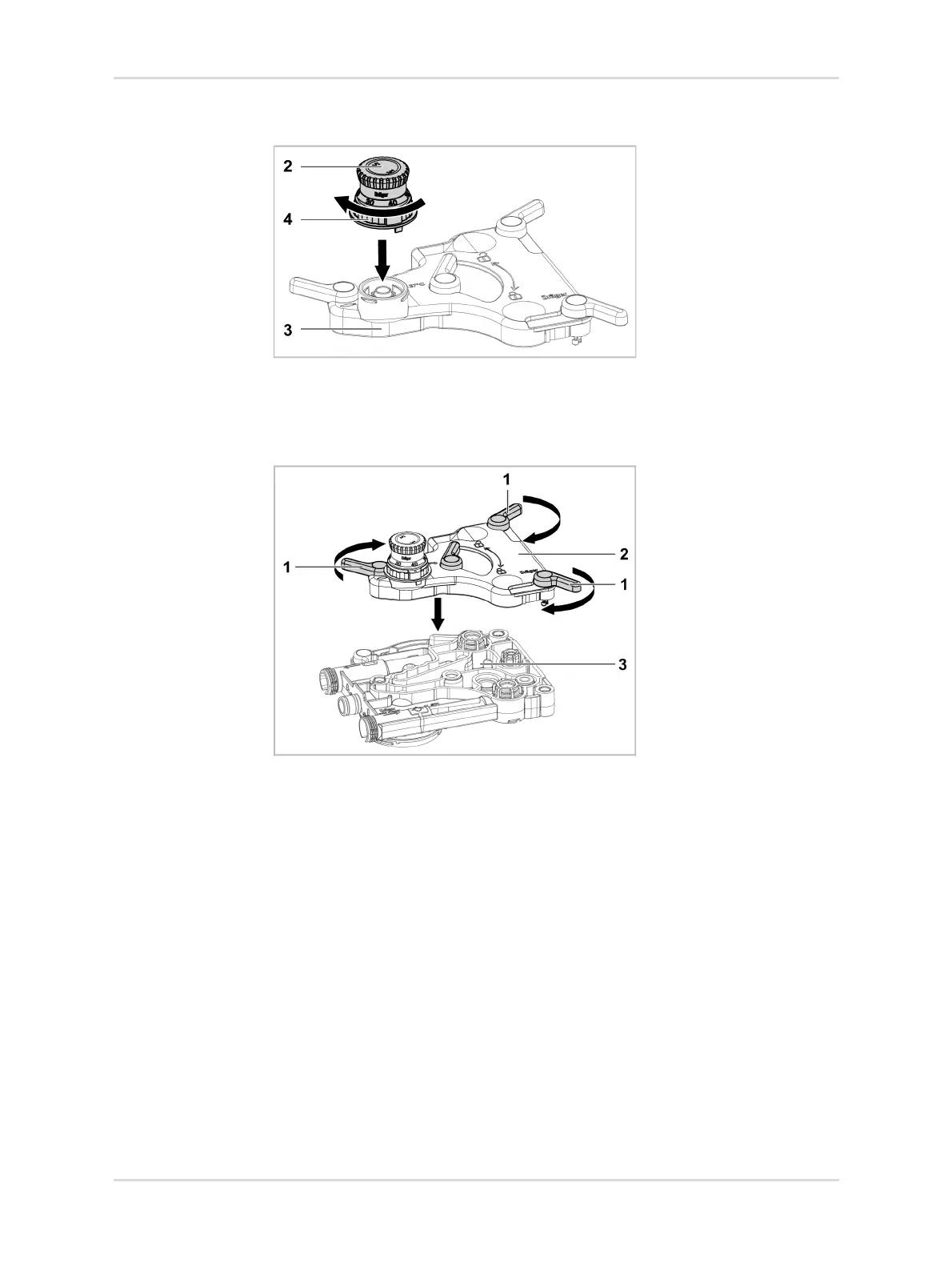 2. Place the upper part of the breathing system (2) on the lower part of the
