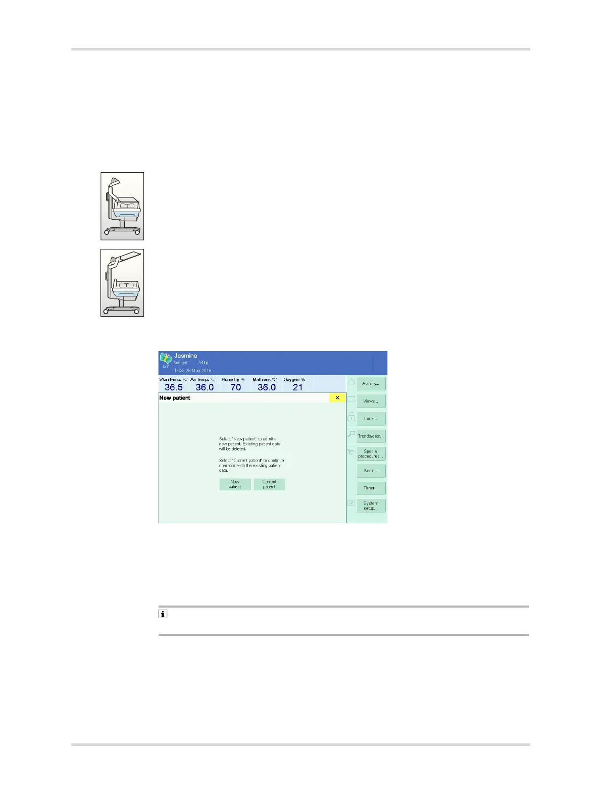 If the hood is closed, the device starts up in air temperature mode with the user-