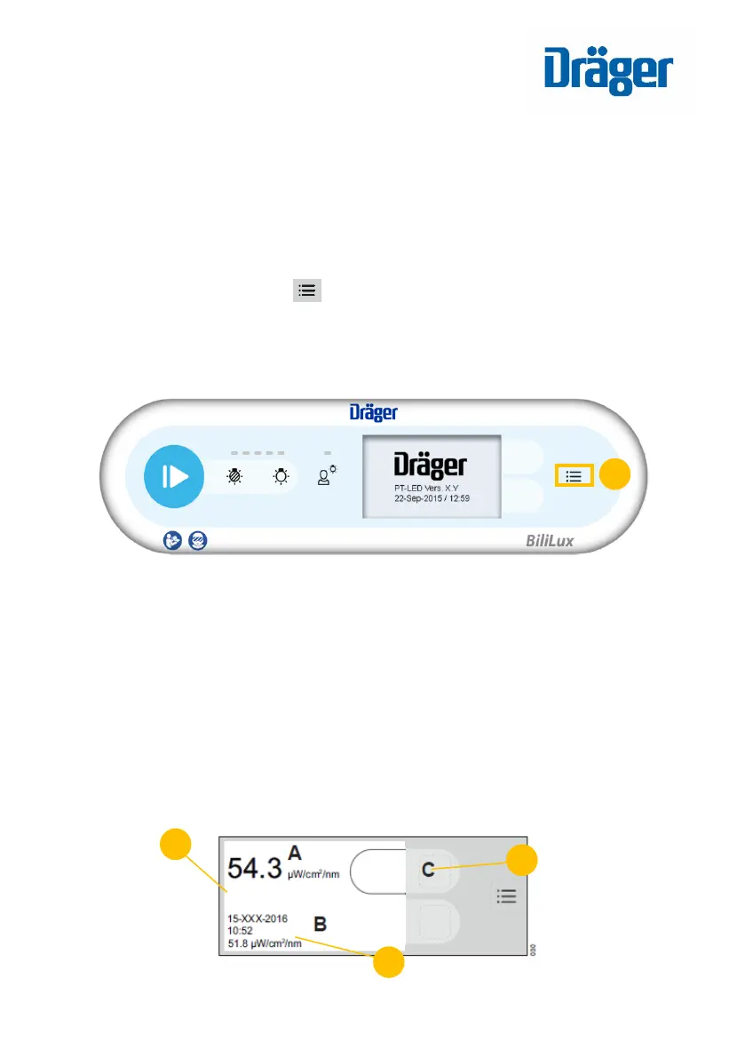 button (C) on the radiometer screen.