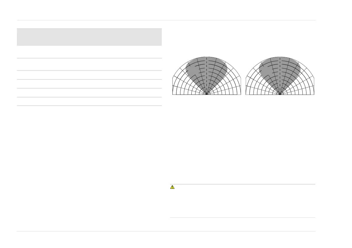 90°. Det typiske synsfeltet og påvisbare området for en 0,1 m