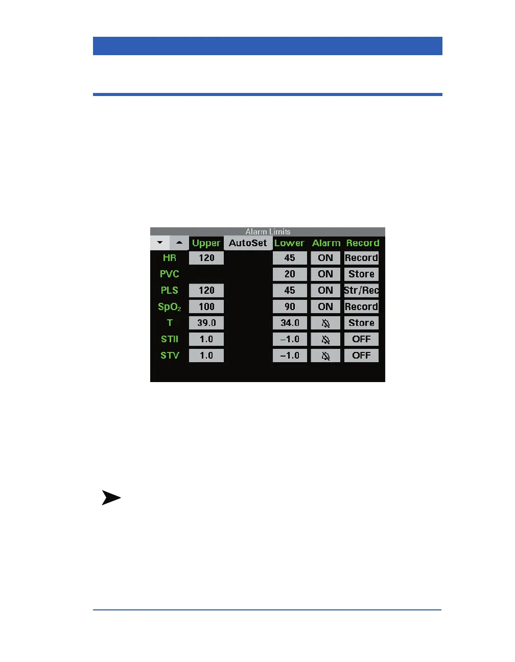 NOTE: Set arrhythmia alarms and alarm recordings on the