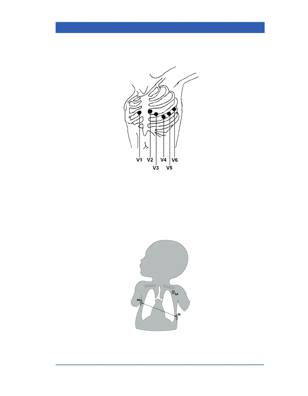 Pod for neonates. Position the right arm (RA), left arm (LA) and