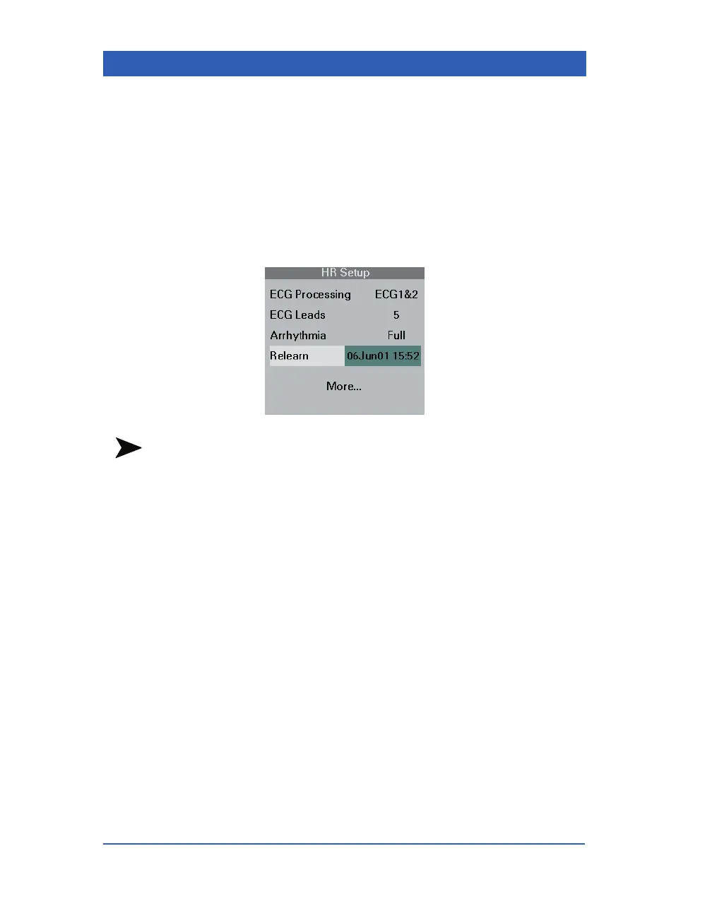 time of the learning phase are displayed in the HR Setup menu