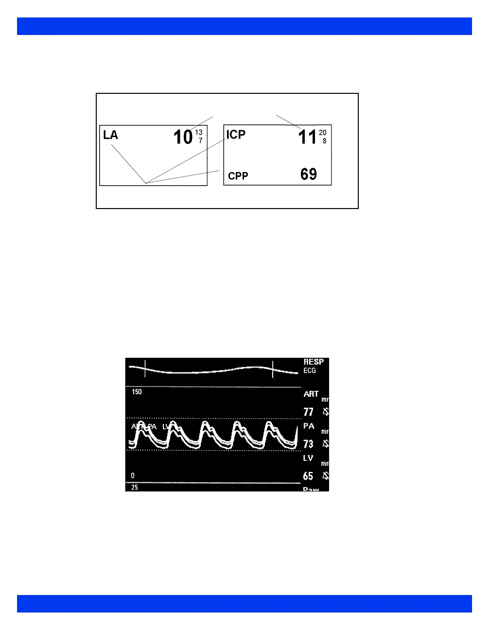 Parameter boxes for non-pulsatile pressures (LA, RA, CVP, ICP, ICP2, ICP3, ICP4)