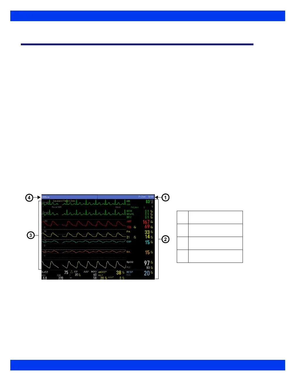 The standard Delta monitor provides five waveforms with adjacent parameter boxes.
