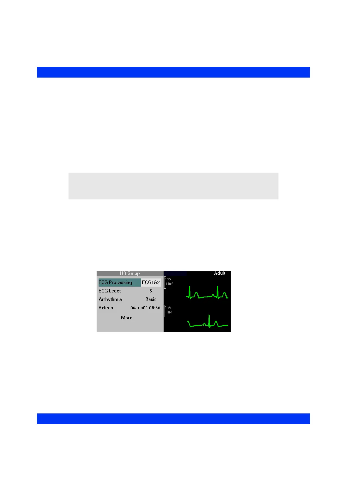 The monitor can process one or two ECG leads. If you select two-channel signal