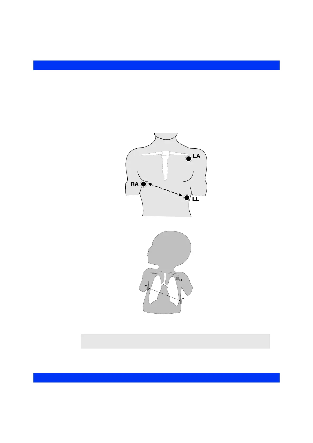 cardiac monitoring, as illustrated below. The monitor uses the right arm (RA)