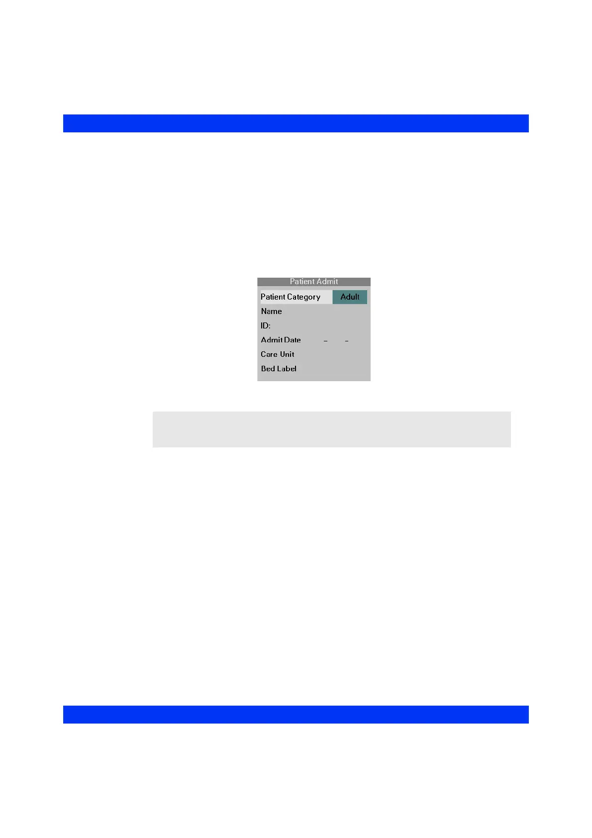 NOTE: You cannot enter selections for Care Unit and Bed Label when the monitor is