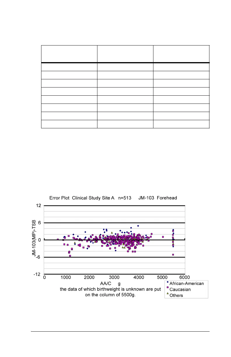 Graph 22 – Hospital Study Site A Birthweight Error Plot, Forehead