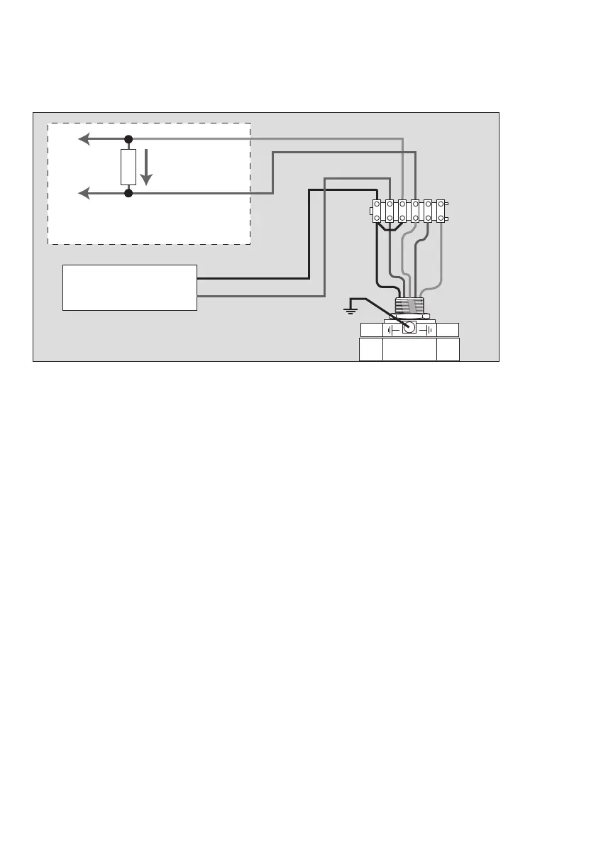 Connection diagram for operation as 4 to 20 mA current sink (sink operation) with isolated