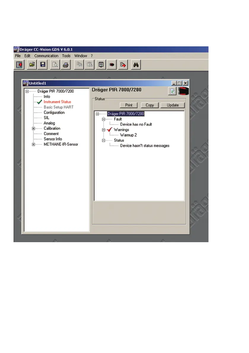 Information in the "Instrument Status" menu: