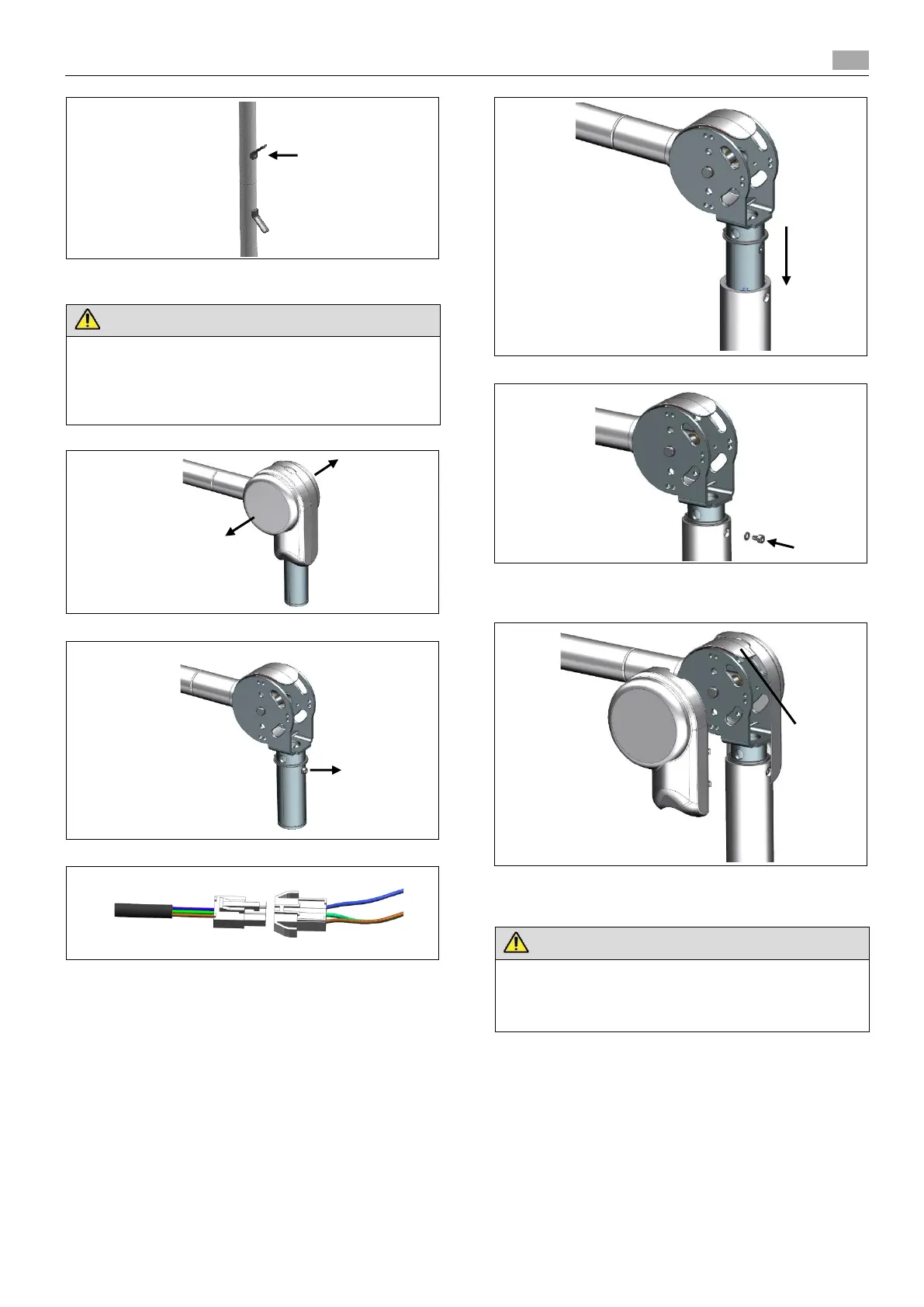 Never unscrew the upper cable holder — risk of injury.