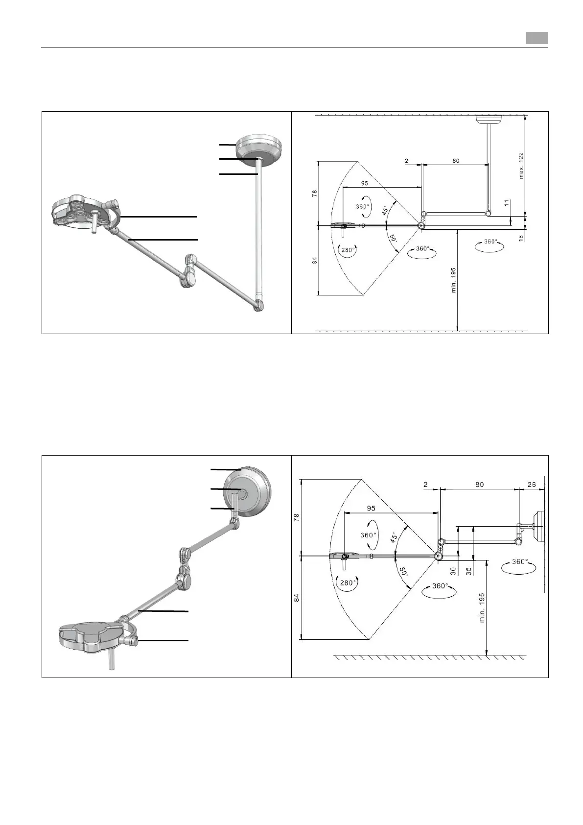 B: Leuchtenkopf mit steriliserbarem Handgriff