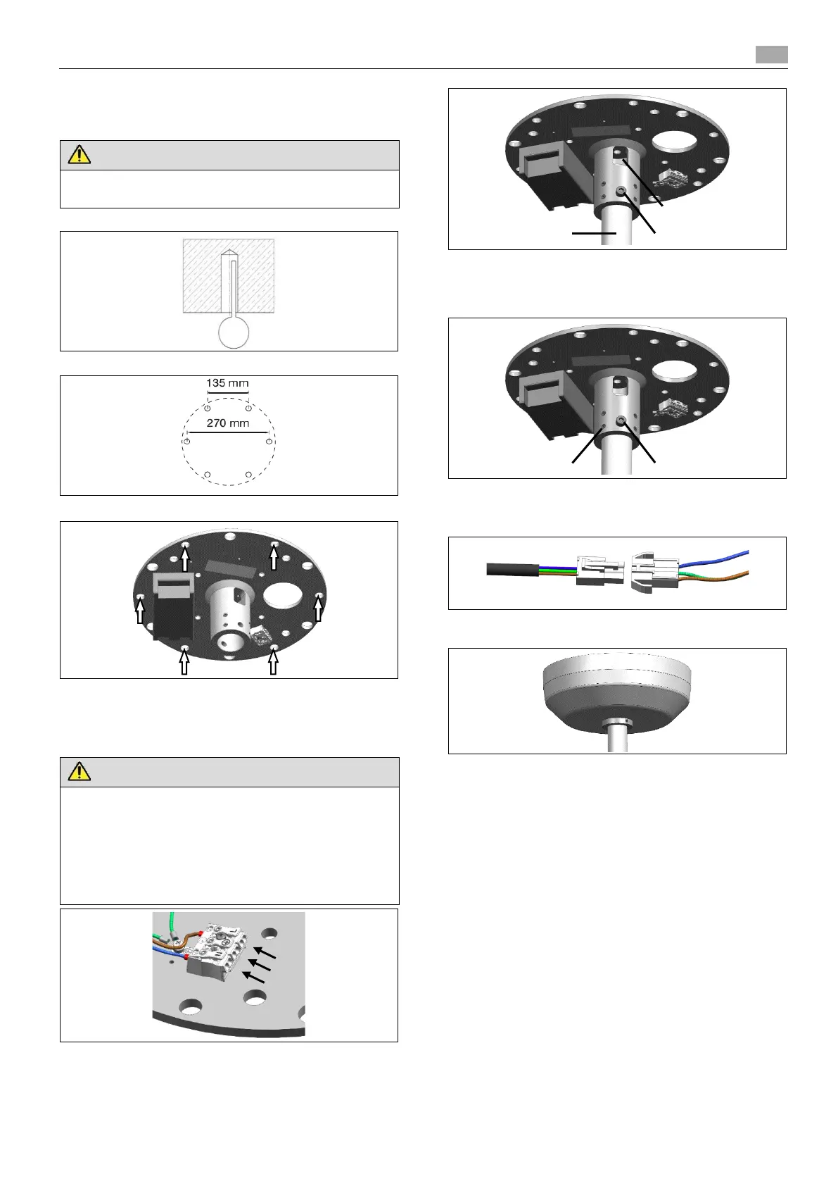 Kabel des Deckenrohrs durch Öffnung «B» des