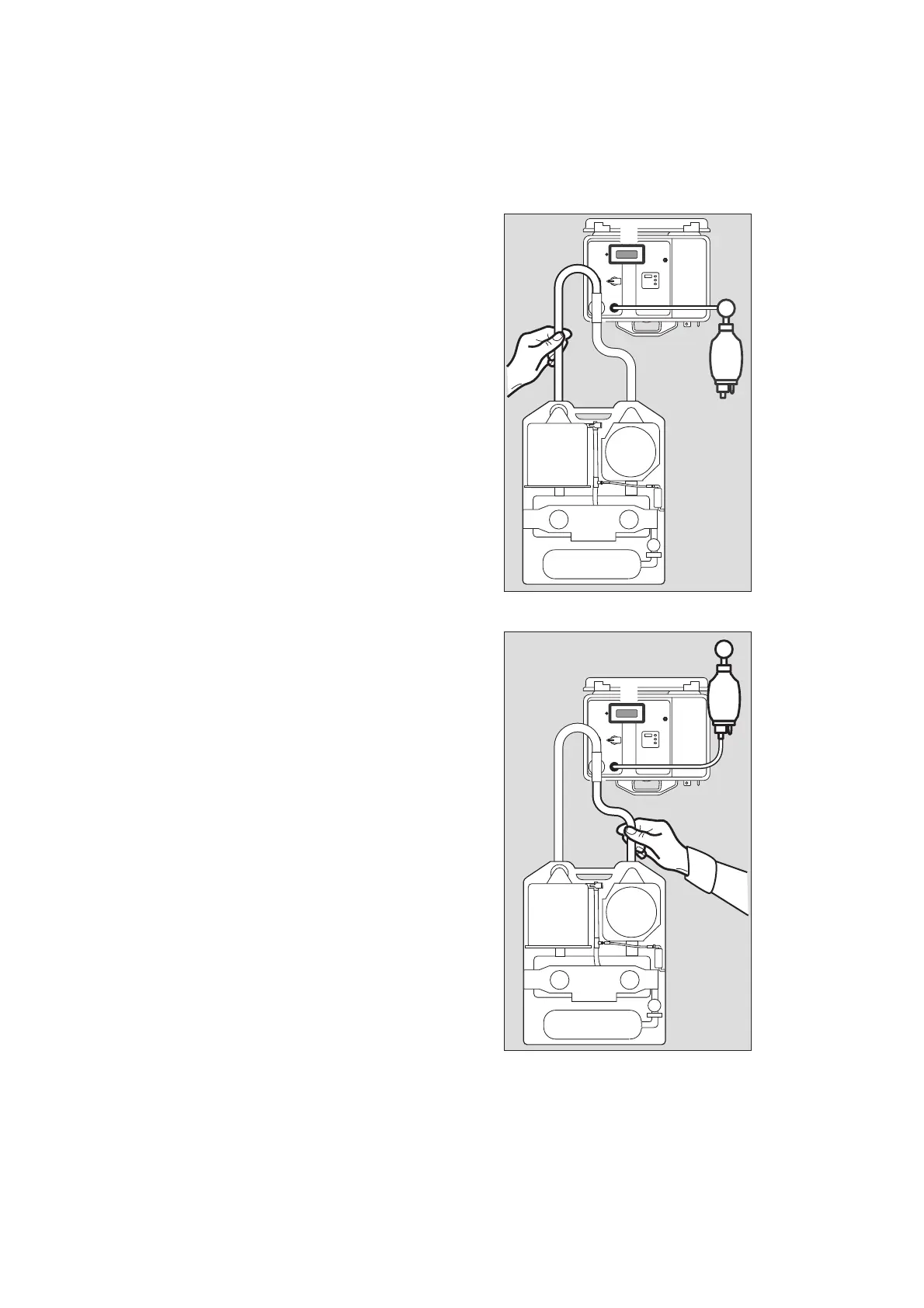 1 Tightly pinch the exhalation hose with your hand. Use peg