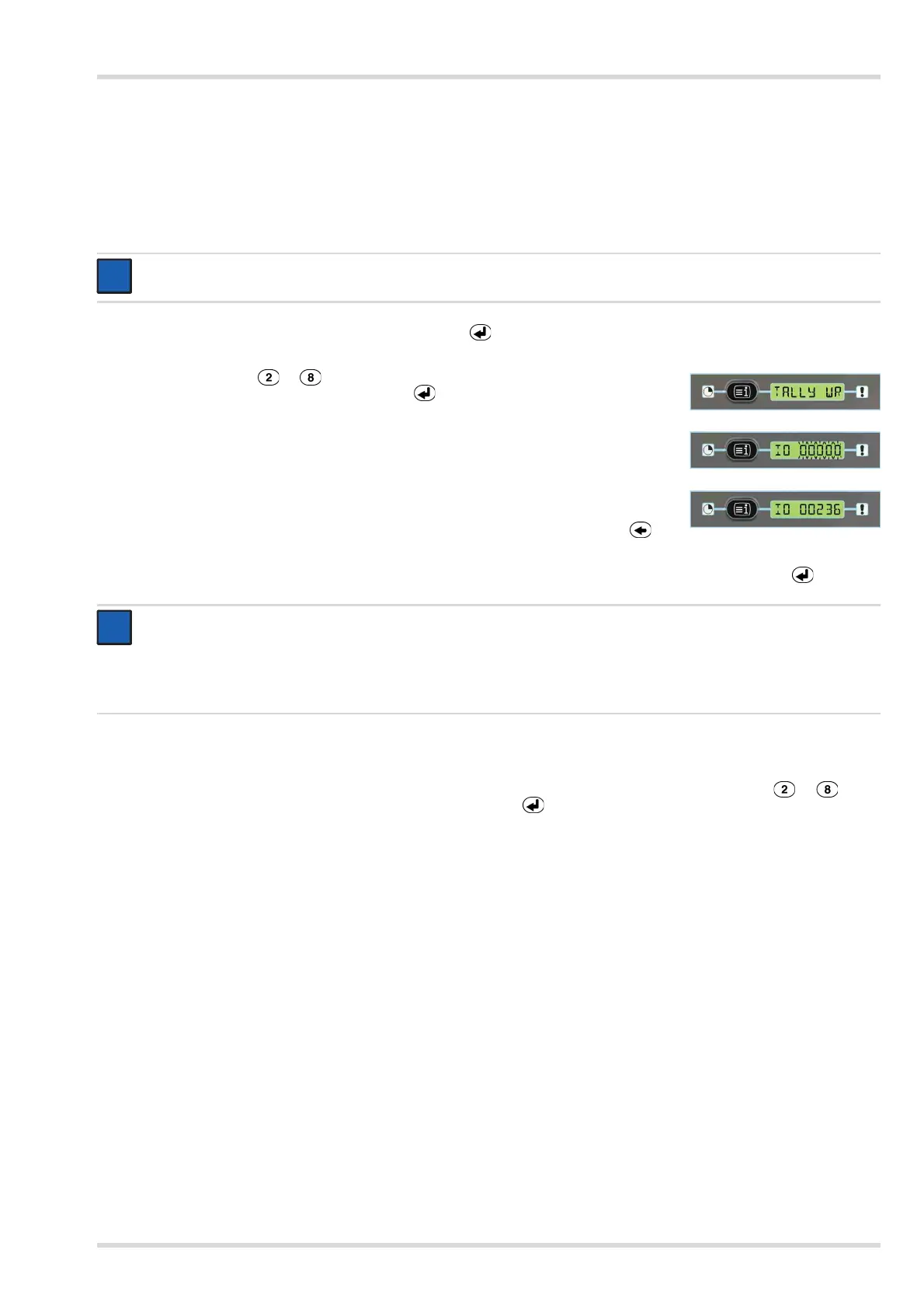 If the enter key is pressed, with no tally inserted in Channel 1, the display will show TALLY NO. Re-press the enter key to