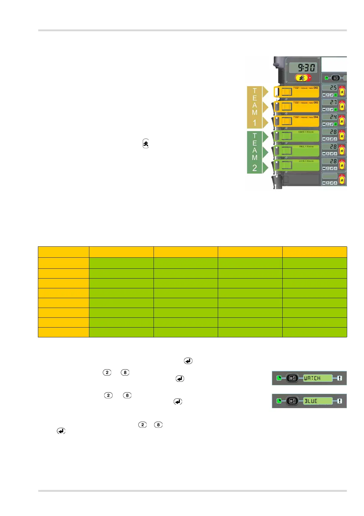 The table below shows an example of keyword programming. There are up to four categories each with seven selections, and