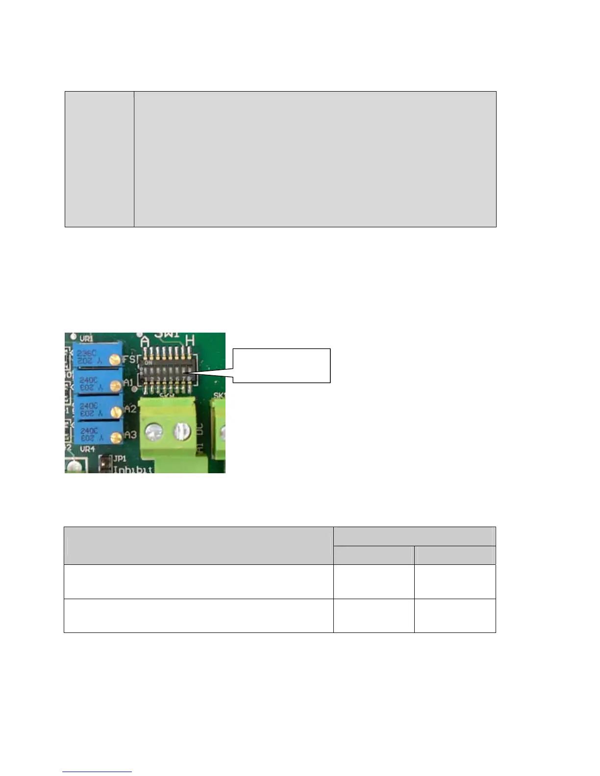 Use switch SW1 on the main circuit board set the operation of the alarms/relays: