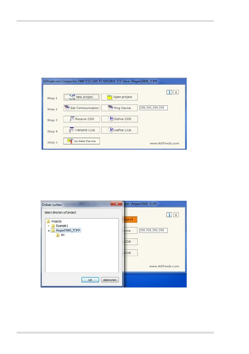 nen und das entsprechende Projekt REGARD3900_TCPIP auswählen.