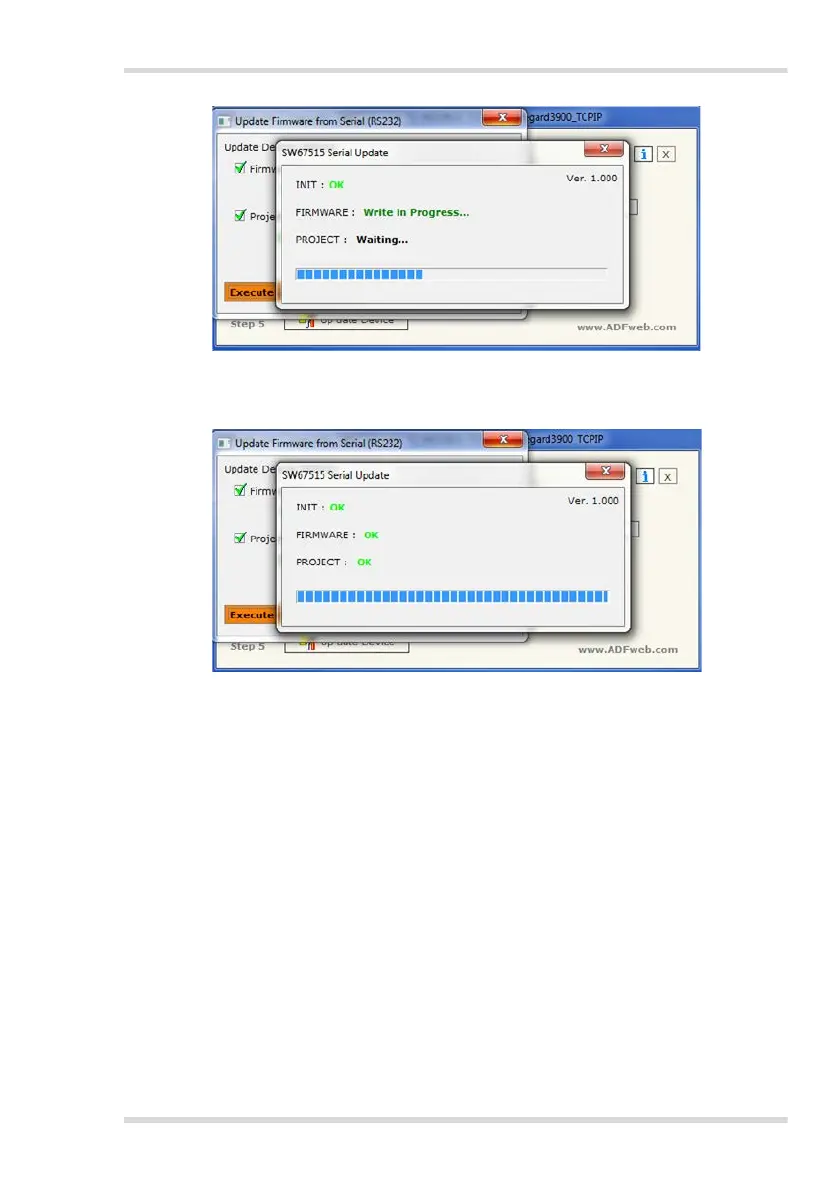 Nach erfolgreicher Beendigung wird in den 3 angezeigten Vorgängen INIT, FIRMWARE und
