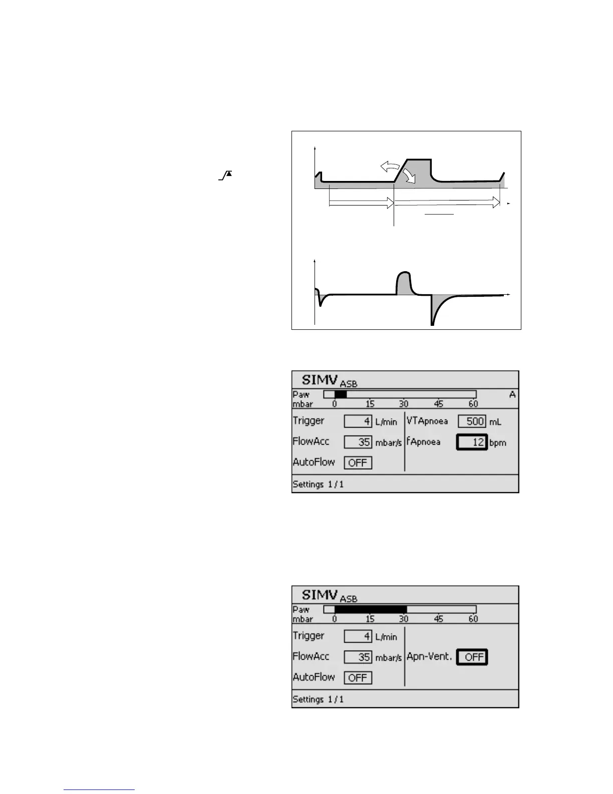 If apnoea ventilation is activated, the »VTApnoea« and »fApnoea«