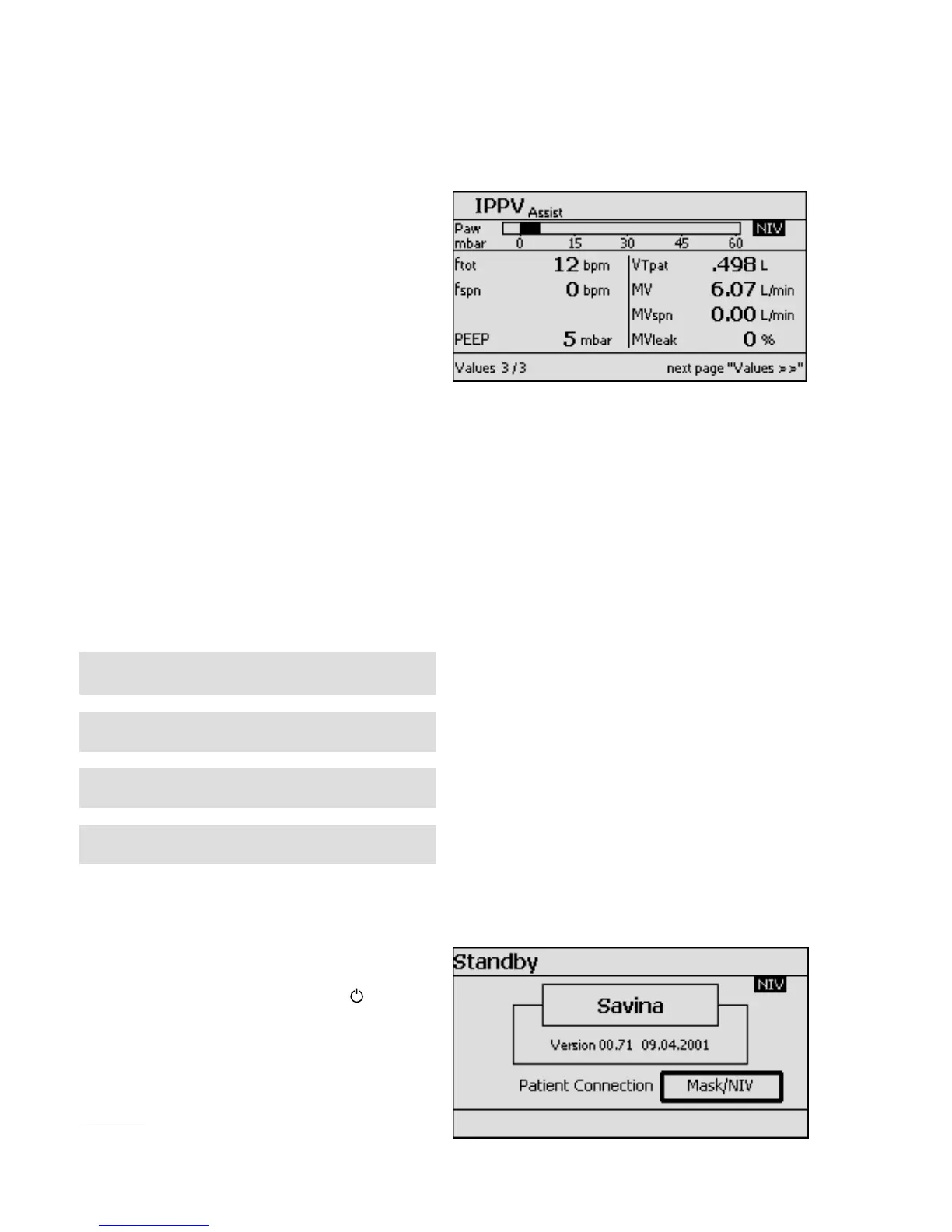 All ventilation modes are selectable in »Mask/NIV« mode.