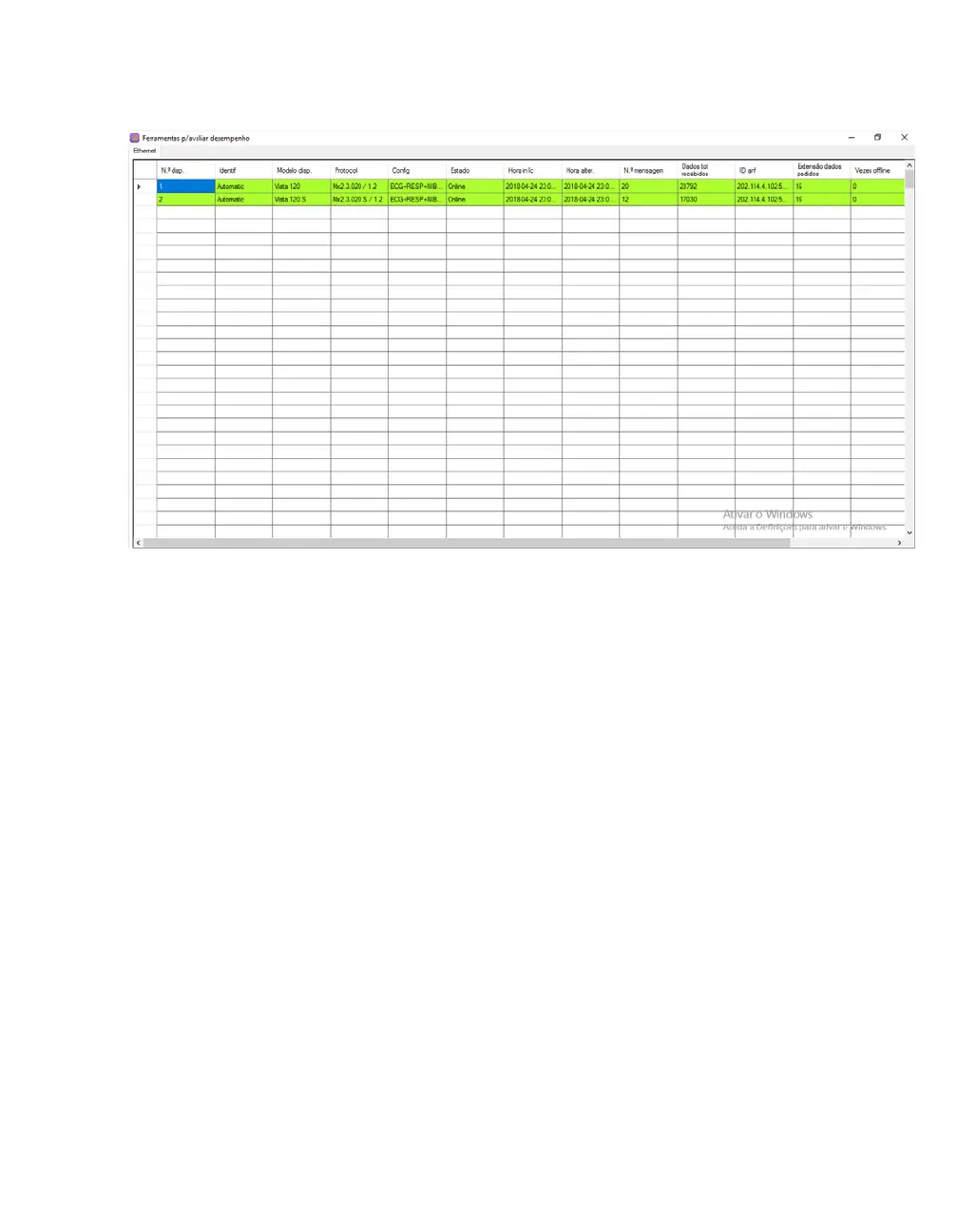 Hora iníc: hora em que o dispositivo ficou online